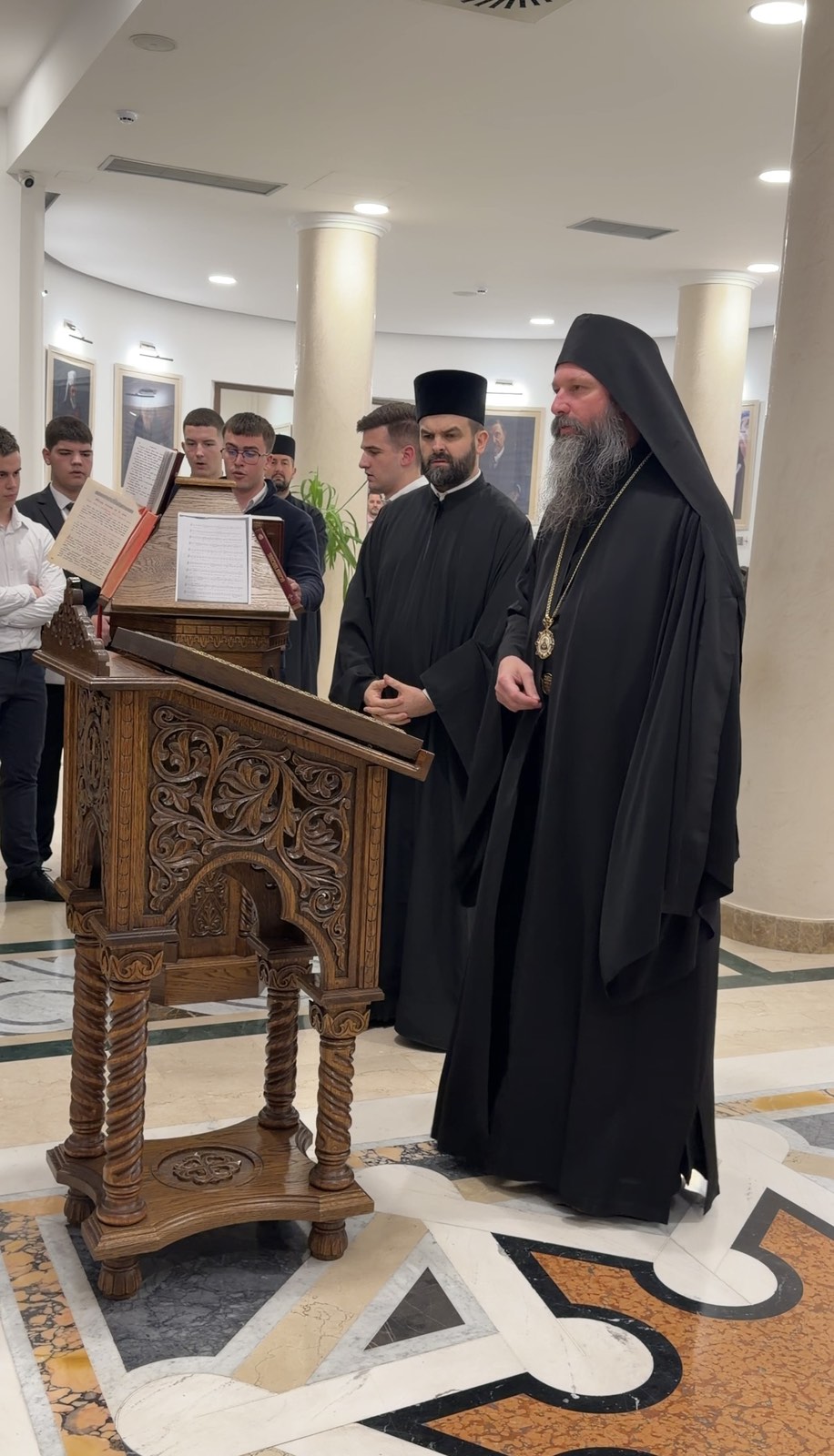 Дана 27.11.2025. године у Српској Православној Богословији Светог Саве у Београду служено је свечано празнично вечерње богослужење уочи почетка божићног поста. Викар Његове Светости Епископ новобрдски Господин Иларион поздравио је све професоре, запослене и ученике наше школе и пожелео Богом благословен почетак поста и пожелео да учествујемо сви у вечној трпези Оца небеског. Уздржавати се од зла и чинити добро кораци су који воде ка Царству небеском. Пост треба да буде радосни труд и напор који приносимо не би ли прошли кроз врата Раја. На хришћанина не треба да утиче то какву храну једе, односно, не једе. Његова храна се односи на духовно јело и пиће, како наводи Свети Апостол Павле. Овом приликом захвалили бисмо се и драгим пријатељима наше Школе архимандриту Нектарију (Ђурићу), главном секретару Светог Архијерејског Синода, архимандриту Данилу (Гаврановићу), директору Патријаршијске управне канцеларије, протојереју-ставрофору Ђорђу Стојисављевићу, шефу кабинета Његове Светости Патријарха српског Господина Порфирија, протојереју-ставрофору др Драгану Протићу, бившем Ректору наше Школе и протођакону Драгану Радићу, старешини Храма Светог Саве у Београду на издвојеном времену.