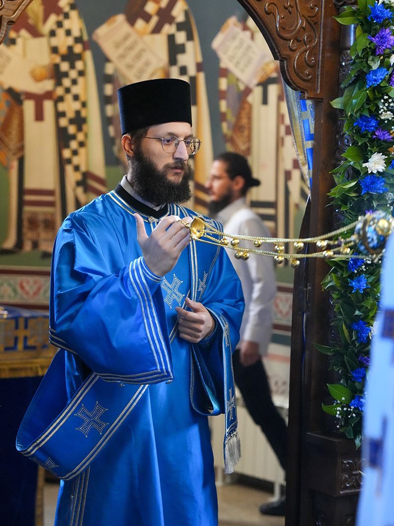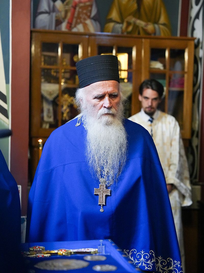 Светејшем Патријарху су саслуживали: епископ Доситеј, архимандрити великореметски Стефан и рајиновачки Срефим, протојереј-ставрофор Маринко Радмило, јеромонах Андреј, протођакон Драган Радић, ректор Богословије Светог Саве протођакон Радомир Врућинић и ђакон Василије Перић.