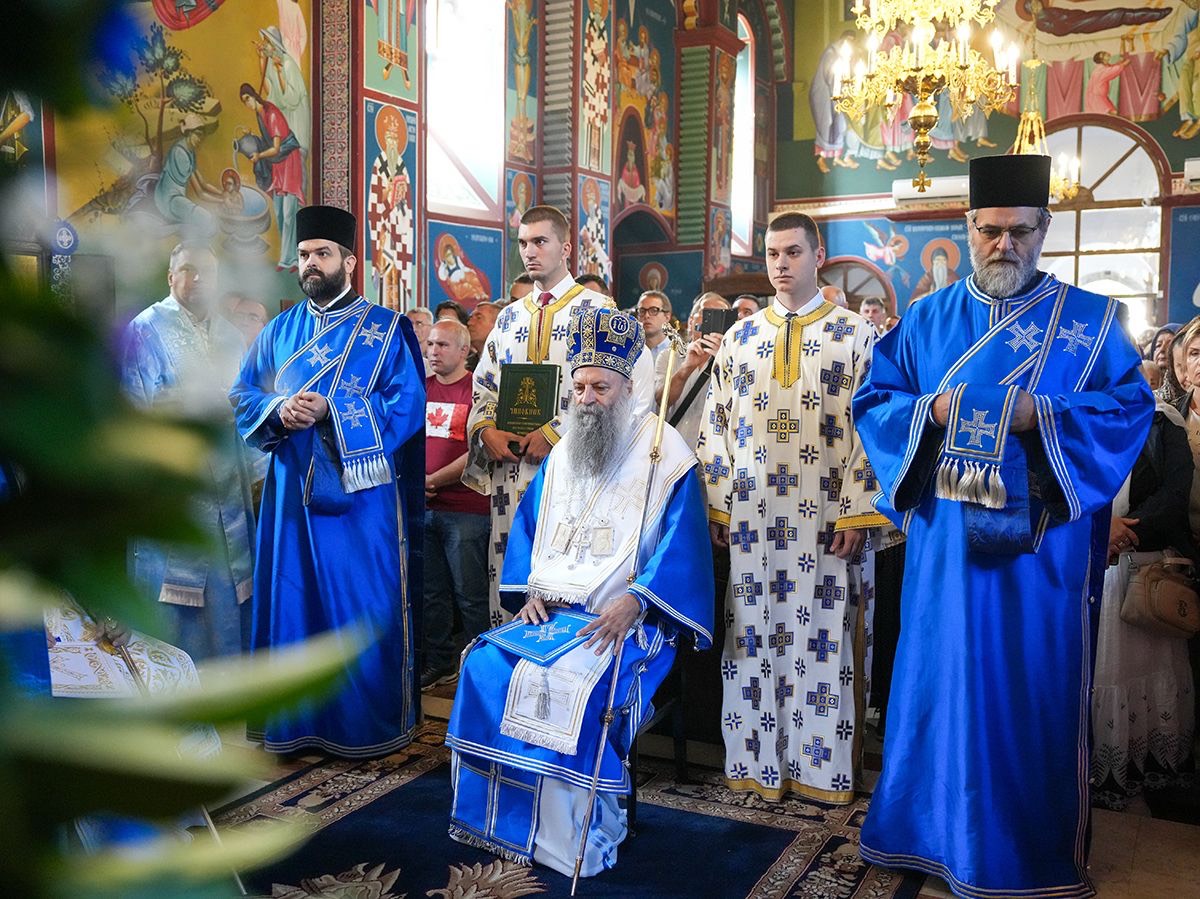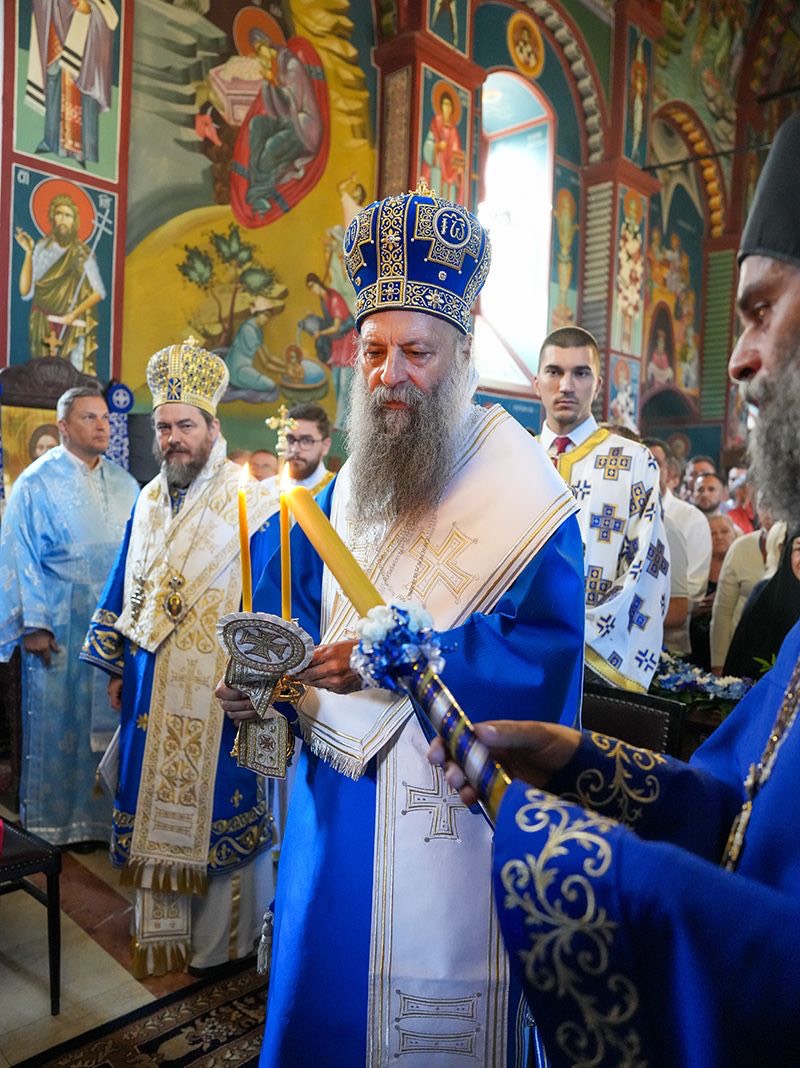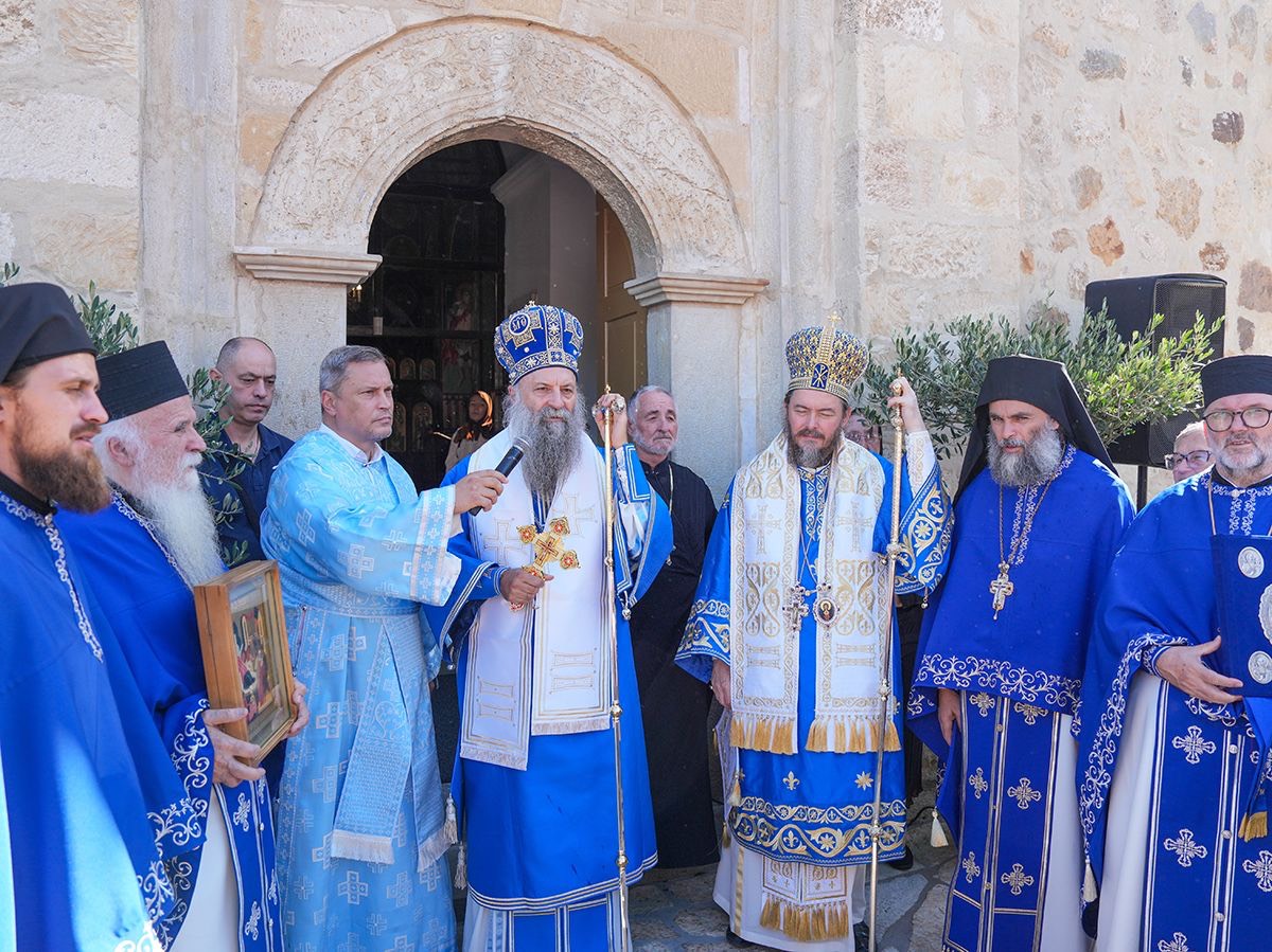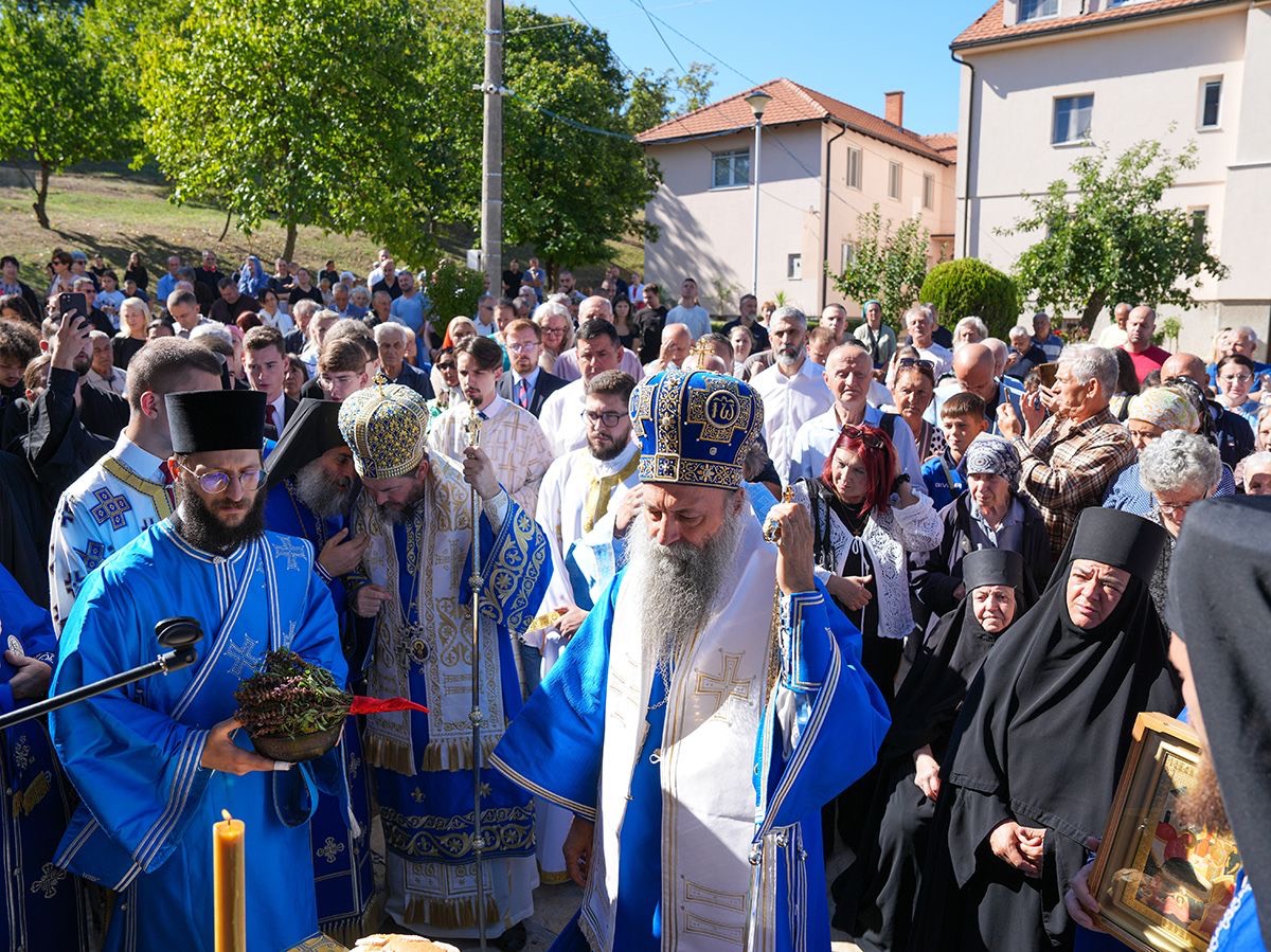 У порти пет векова старе светиње, подигнуте крај извора лековите воде, Светејшег Патријарха српског г. Порфирија, у чијој пратњи је био Преосвећени Епископ љипански г. Доситеј, дочекао је настојатељ манастира, архимандрит Серафим, са монаштвом и благочестивим народом.