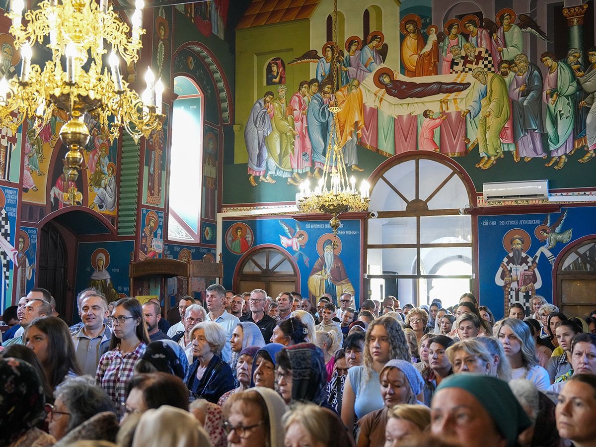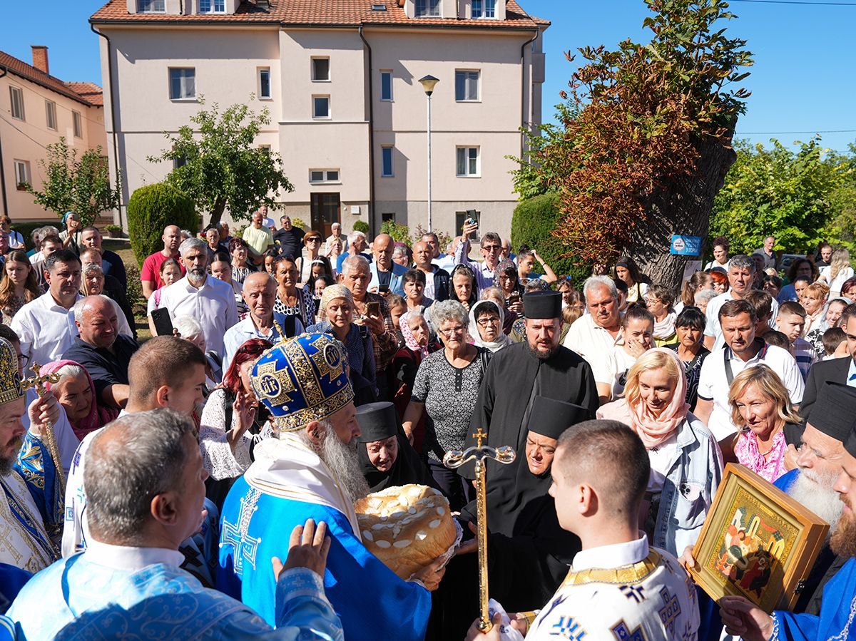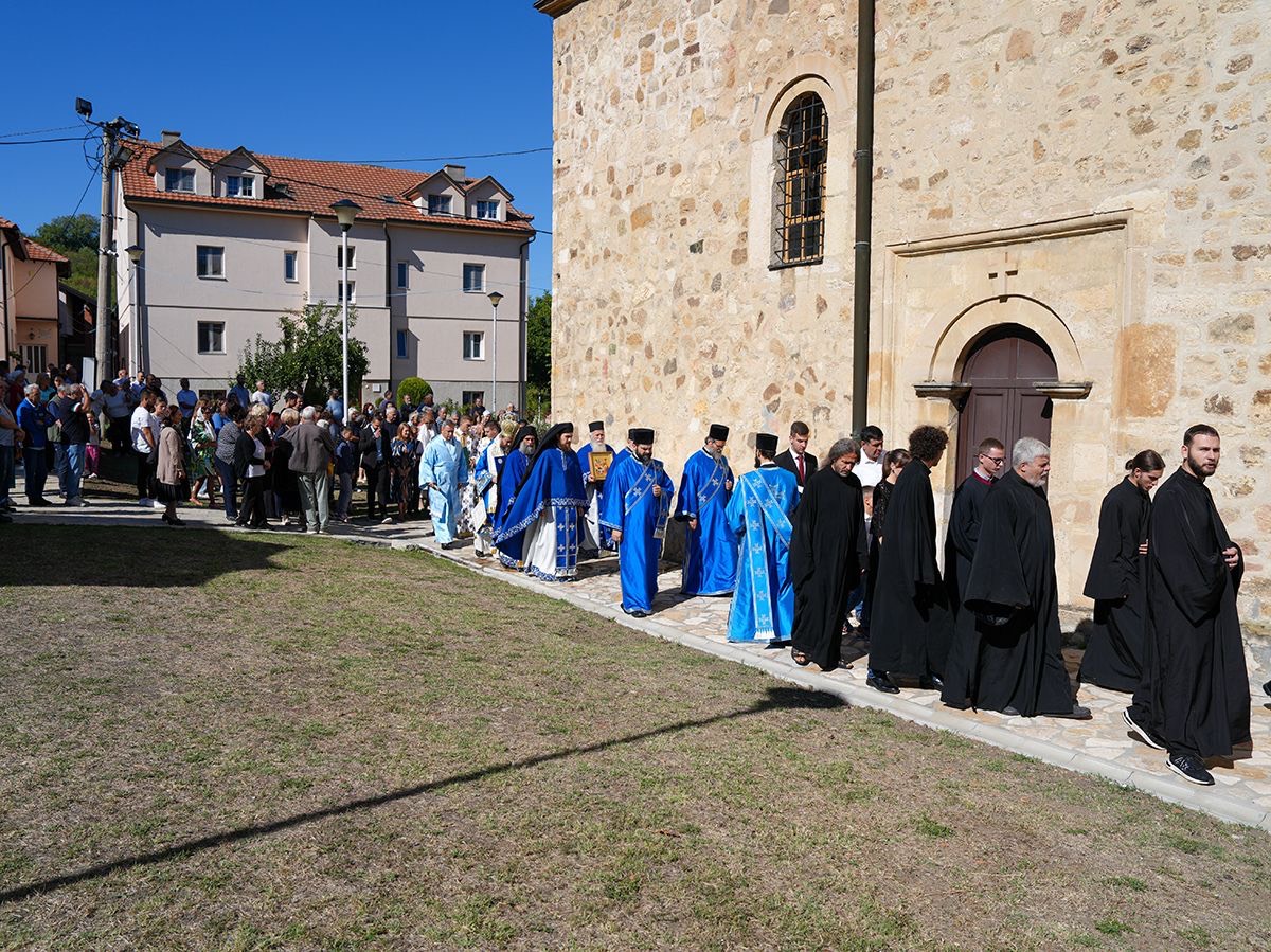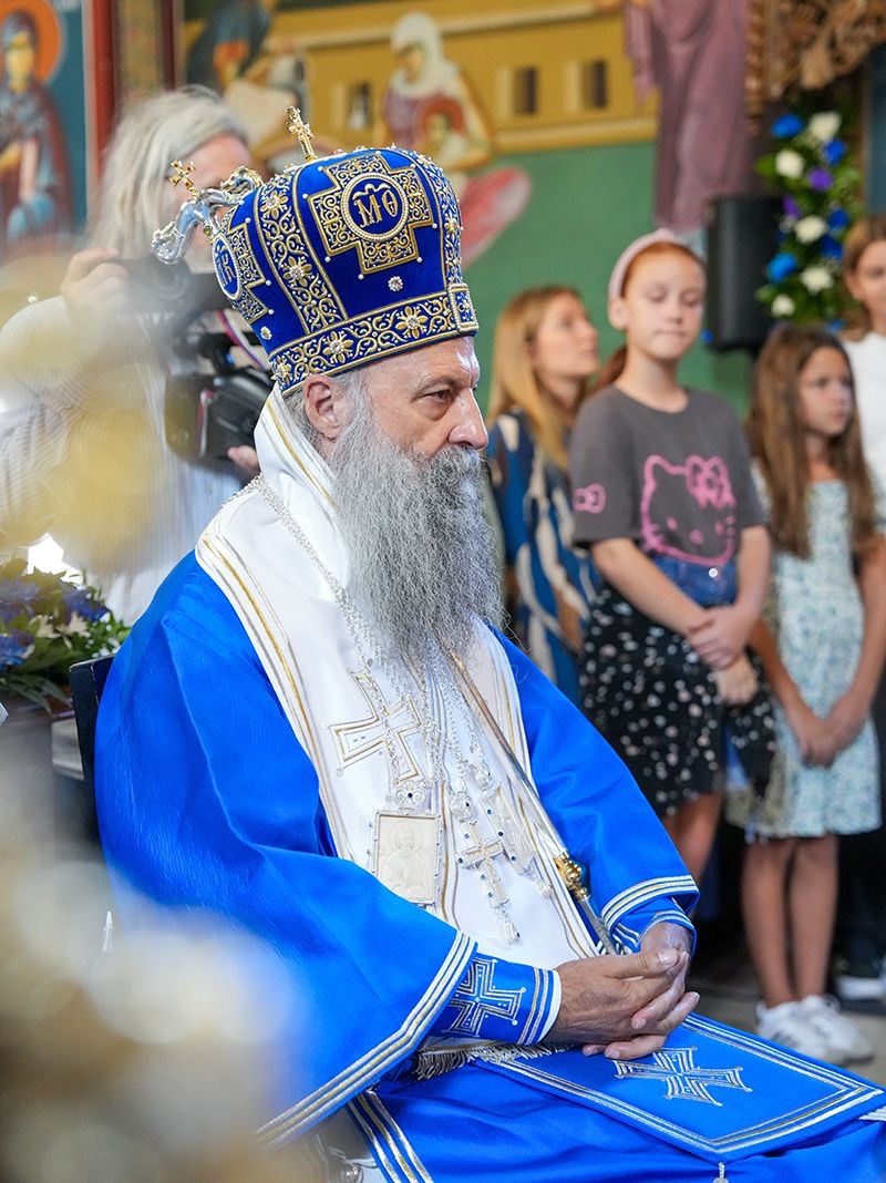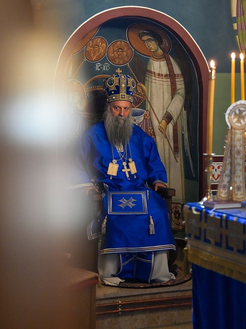У порти пет векова старе светиње, подигнуте крај извора лековите воде, Светејшег Патријарха српског г. Порфирија, у чијој пратњи је био Преосвећени Епископ љипански г. Доситеј, дочекао је настојатељ манастира, архимандрит Серафим, са монаштвом и благочестивим народом.