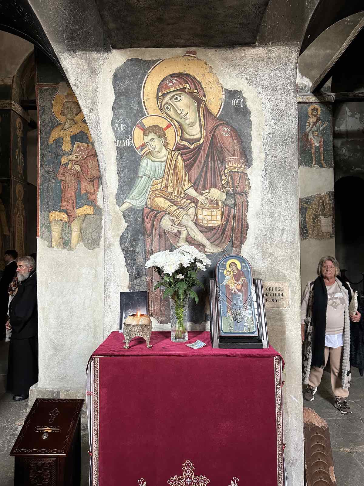Након посете Богословији обишли су задужбину цара Душана-Манастир Светих Архангела, где су и преноћили.