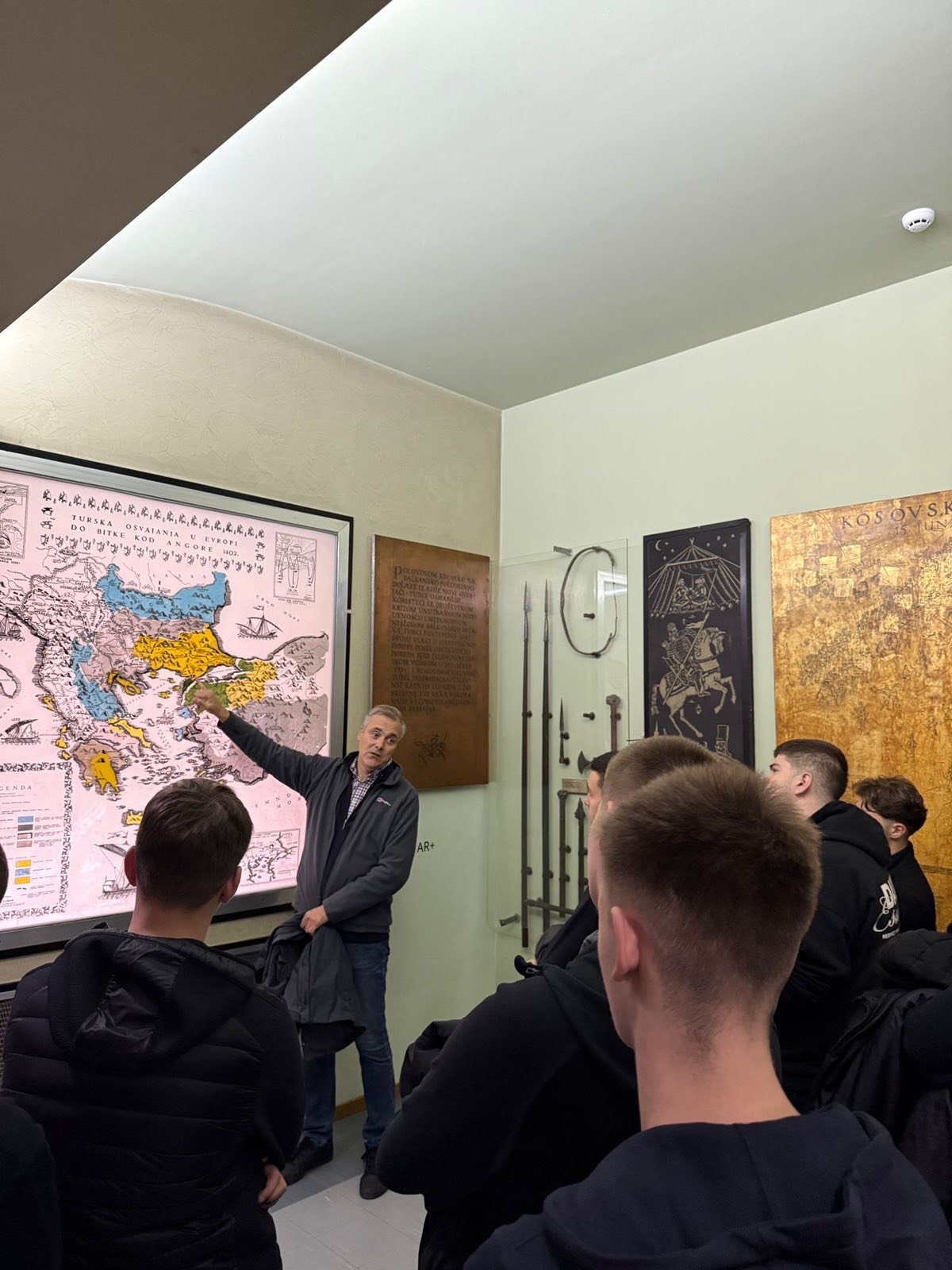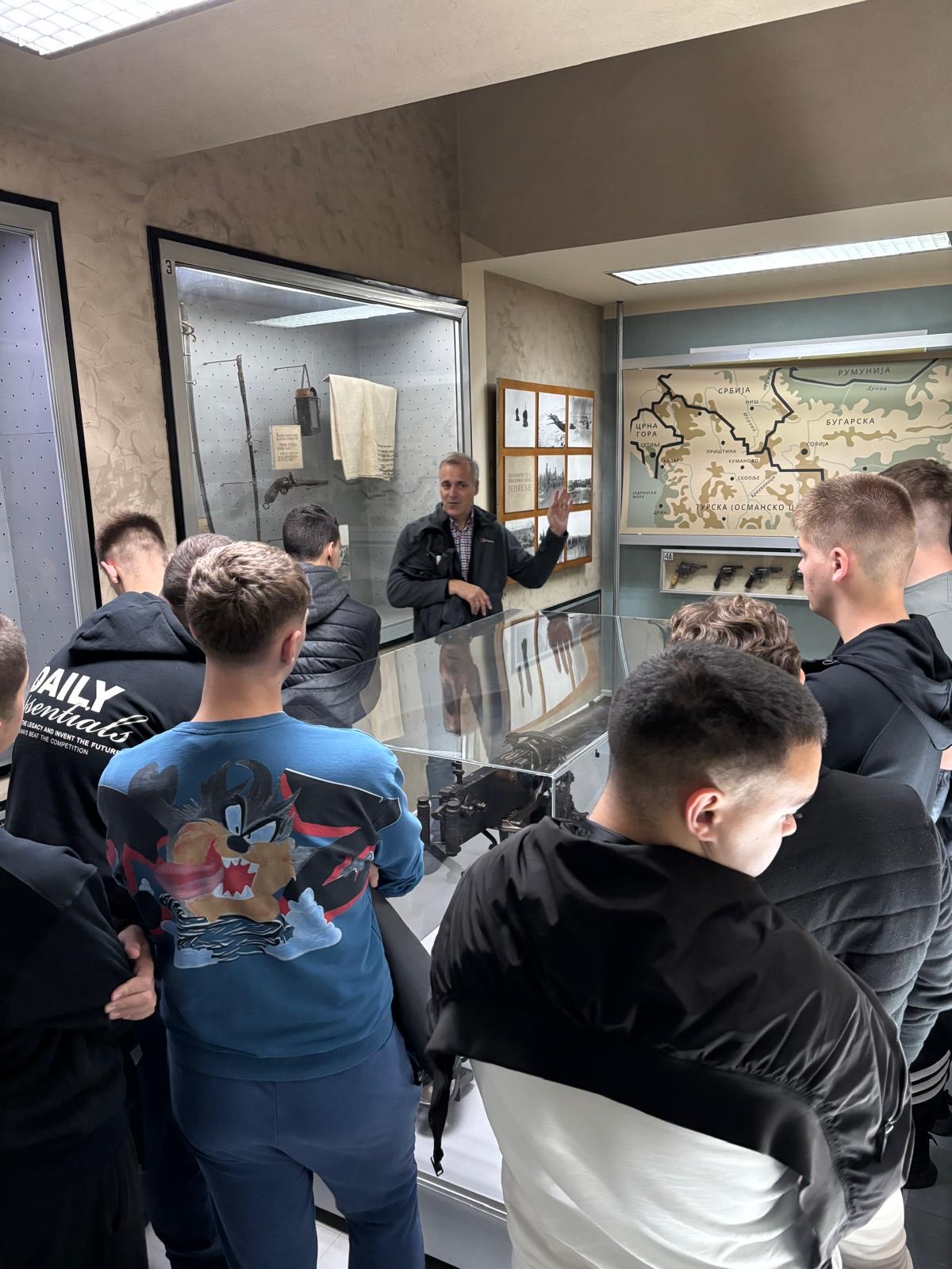 Ученици другог разреда Богословије Светог Саве, заједно са професорком Богданом Николић, посетили су Војни музеј на Калемегдану уз стручно вођење кустоса и историчара Уроша Миливојевића.