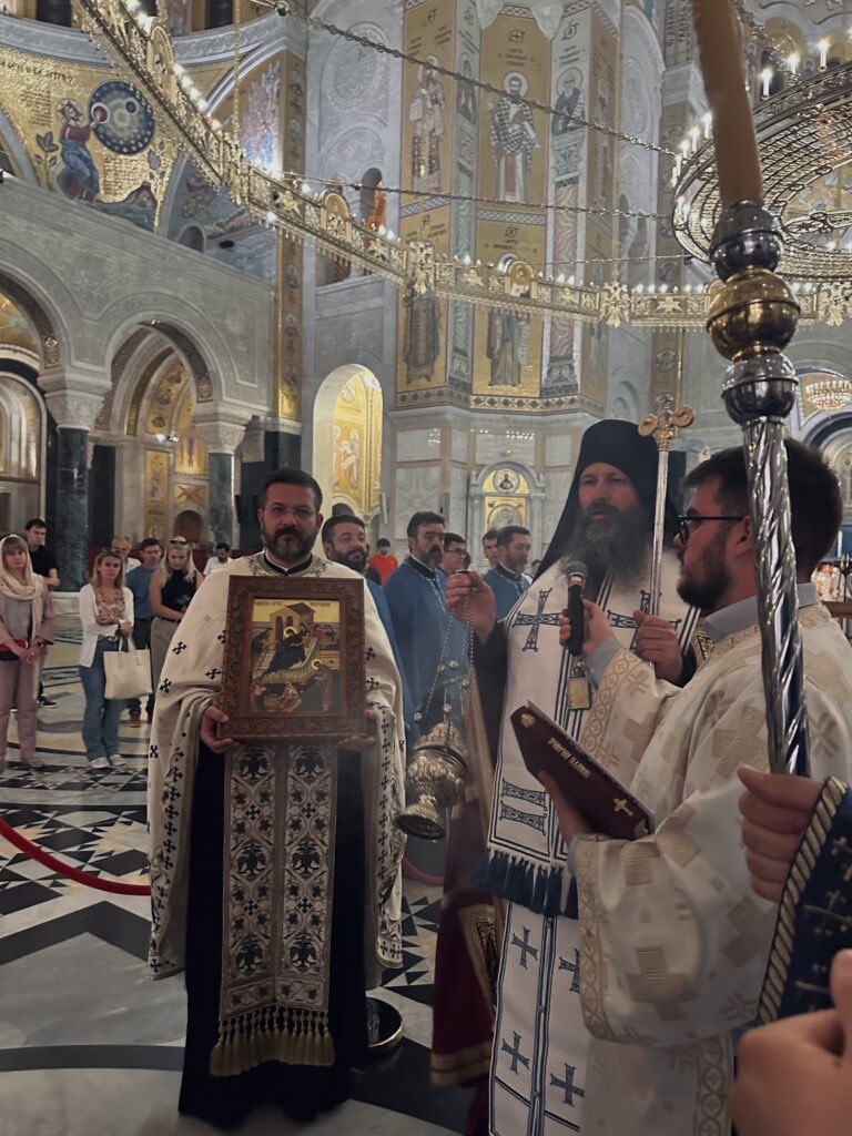 Са благословом Његове Светости Патријарха српског г. Порфирија, богослужењем је началствовао Његово Преосвештенство викарни Епископ новобрдски г. Иларион, уз саслужење братства Храма.