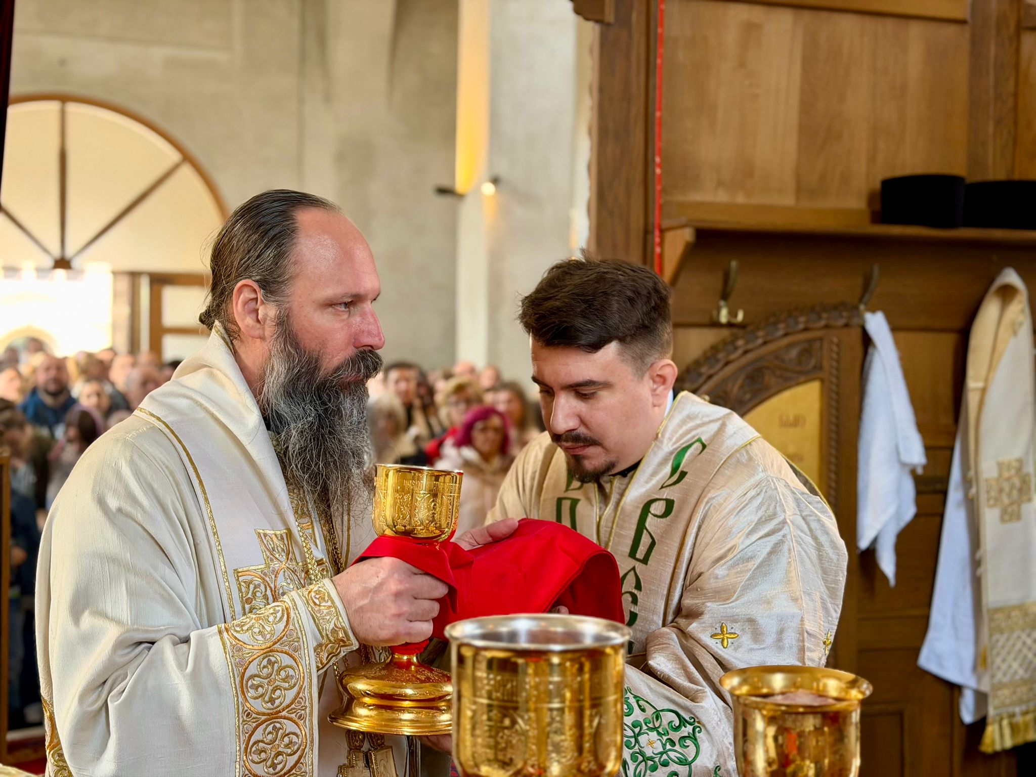Дана 08. марта 2026. године, Његово Преосвештенство Епископ новобрдски Господин Иларион служио је Свету Архијерејску Литургију у Цркви Светог Василија Острошког на Бањици. На Светој Литургији молитвено учешће узели су професори и ученици Српске Православне Богословије Светог Саве у Београду. Том приликом, Владика Иларион је са благословом Његове Светости Патријарха српског Господина Порфирија рукоположио у чин ђакона господина Николу Вилотића, професора наше Школе. Никола је рођен 28. јула 1998. године у Лелићу од оца Мирка (свештеник) и мајке Љиљане. Основну школу је завршио у Шапцу 2010. г., док је Богословију Светог Саве завршио 2015. године. Основне студије на Православном богословском факултету у Београду завршава 2020. године, док је следеће године привео крају и мастер студије. Од јануара 2021. године бива постављен за професора наше Школе. Са супругом Јеленом је у браку од 2022. године и има сина Богдана. Нашем младом колеги, желимо Богом благословено ступање у чин ђакона и да следи пут светих отаца Православне Цркве. На многе и благе године.